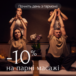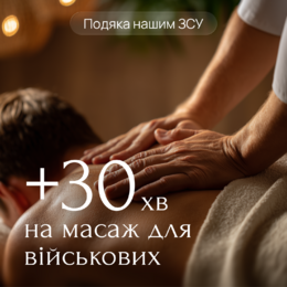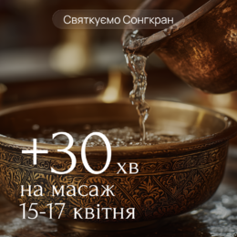 Для новых клиентов “Royal Thai Spa”. При первом посещении нашего салона мы дарим +30 минут массажа к любой часовой процедуре , на второе посещение в течении месяца. Данный бонус не суммируется з подарочными сертификатами.